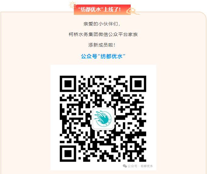 下一步,我們將對“紡都優(yōu)水”公眾號菜單功能進(jìn)行進(jìn)一步優(yōu)化完善,屆時(shí)可直接跳轉(zhuǎn)接入“柯橋水務(wù)”服務(wù)號。同時(shí),持續(xù)加強(qiáng)新媒體陣地建設(shè),構(gòu)建立體傳播形態(tài),更好地服務(wù)廣大用戶。期待您的關(guān)注!