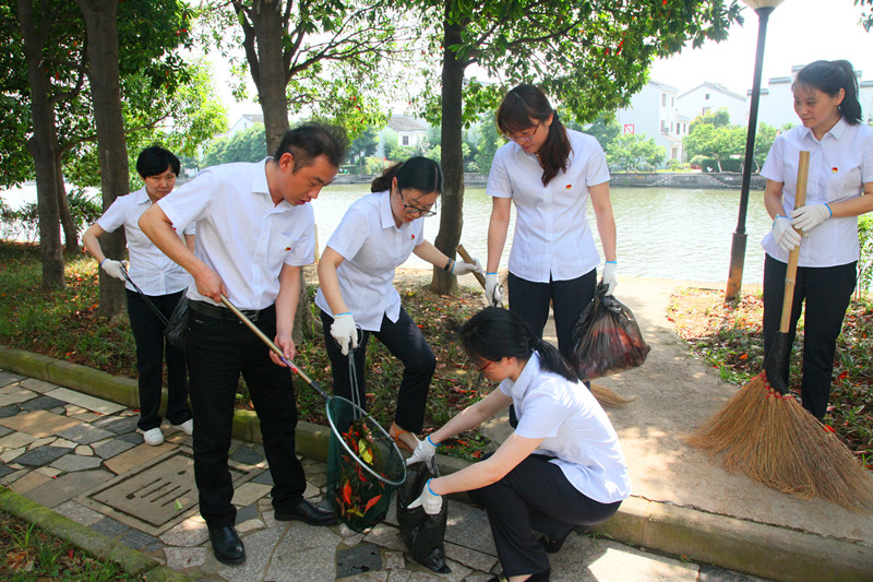 當(dāng)天下午,集團(tuán)機(jī)關(guān)支部黨員來(lái)到集團(tuán)文明城市創(chuàng)建網(wǎng)格聯(lián)系社區(qū)——柯橋街道梅墅水莊開展志愿服務(wù)。通過(guò)清掃路面垃圾、打撈河道垃圾等,以實(shí)際行動(dòng)亮旗“文明城市創(chuàng)建”。