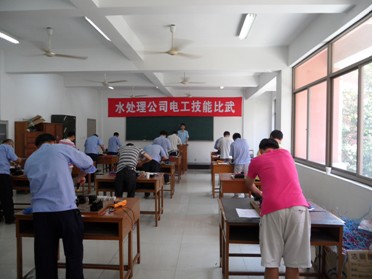 為客觀評(píng)價(jià)電工隊(duì)伍的基本素質(zhì),營(yíng)造“以賽促學(xué),以賽促用”的良好氛圍,水處理公司組織15名持有電工證的員工,在市職業(yè)技術(shù)培訓(xùn)中心舉行了維修電工技能比武,通過(guò)理論測(cè)試和實(shí)際操作相結(jié)合的方式,較為全面地檢驗(yàn)了各自的專業(yè)水準(zhǔn)。