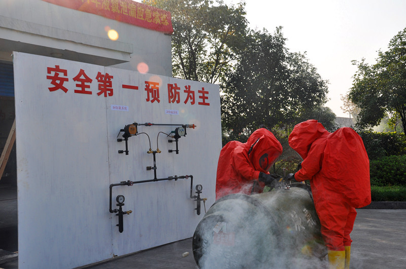 為保障冬季供水安全,進(jìn)一步加強(qiáng)?;愤\(yùn)行管理,11月24日下午,公司開展了2011年液氯泄漏應(yīng)急演練,共20余名職工參加。紹興縣安監(jiān)局、鏡湖新區(qū)公安局、縣水務(wù)集團(tuán)等相關(guān)部門領(lǐng)導(dǎo)到場觀摩指導(dǎo)。