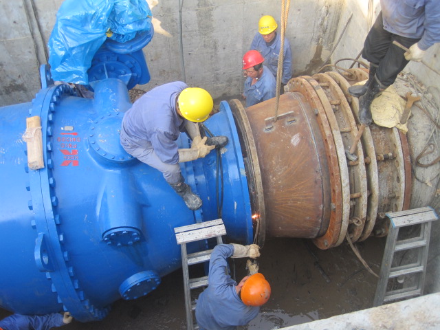 鳳凰山泵站原DN1400閥門,因使用時間長,部分零部件損壞,導致電動操控失靈,手動關(guān)閉困難,安全隱患較大,經(jīng)公司領(lǐng)導研究決定,由安裝分公司負責對此處閥門進行更換,并安裝調(diào)流閥。該調(diào)流閥的成功安裝,將方便小舜江一期總管水壓及流量的調(diào)控,為應(yīng)對今年高峰供水做好了準備工作。