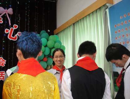 圖一:水處理屠雅琴副總接受育才小學(xué)的學(xué)生掛上的紅領(lǐng)巾;