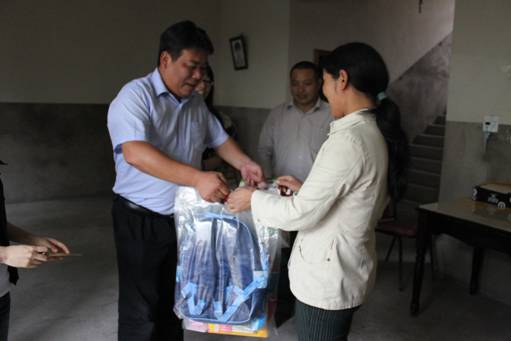 圖為公司領導董衛(wèi)江副總為貧困兒童家庭送上慰問金和學習用品。