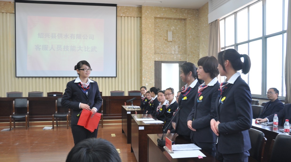 為進一步提高公司營業(yè)客服人員的業(yè)務(wù)素質(zhì)和服務(wù)技能,培養(yǎng)一批業(yè)務(wù)嫻熟、技能精湛的一線服務(wù)能手,4月2日,供水公司在四樓會議室開展了營業(yè)大廳客服人員技能大比武活動。