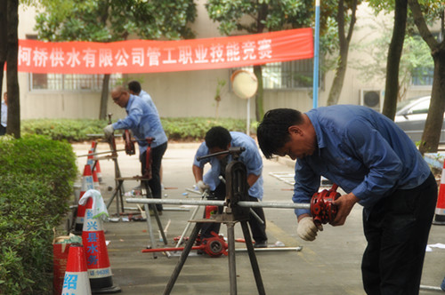 比賽分理論考試和實踐操作兩部分。理論考試涉及制圖、水力學、管材、管網管理、施工、安全等知識,實踐操作包括施工圖紙識讀、施工方案的編制、管道工程量的計算和管道的安裝等。此次職業(yè)技能競賽,全面檢驗了職工的崗位技能綜合素質,促進了供水搶修技能的提升。