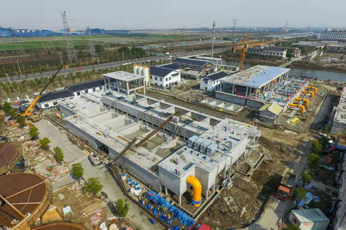 2019年濱海印染產(chǎn)業(yè)集聚區(qū)已落戶61家印染企業(yè),為進(jìn)一步增強(qiáng)污水處理系統(tǒng)達(dá)標(biāo)運(yùn)行的可靠性和出水排放的穩(wěn)定性。2018年9月,污水強(qiáng)化脫氮工程正式動(dòng)工建設(shè)。該工程概算總投資1.85億元,設(shè)計(jì)處理規(guī)模20萬(wàn)噸/日,建設(shè)用地約25畝。主要新建反硝化生物濾池、活性炭投加池、綜合加藥間、高效混凝劑投加系統(tǒng)、出水泵房等項(xiàng)目。其中,濾池采用特殊規(guī)格及形狀的陶料濾料作為反硝化生物的掛膜介質(zhì),能極好去除總氮,確保污水處理后的總氮達(dá)標(biāo)率保持100%。由于該工程任務(wù)重、工期緊,公司針對(duì)關(guān)鍵節(jié)點(diǎn),細(xì)化施工計(jì)劃,加強(qiáng)協(xié)調(diào)管理。通過(guò)平行施工、交叉施工等多種方式,于2018年12月底完成土建主體結(jié)構(gòu)施工,2019年 1月中旬完成核心工藝濾池底板工程,確保污水強(qiáng)化脫氮工程與現(xiàn)有系統(tǒng)全方面對(duì)接。