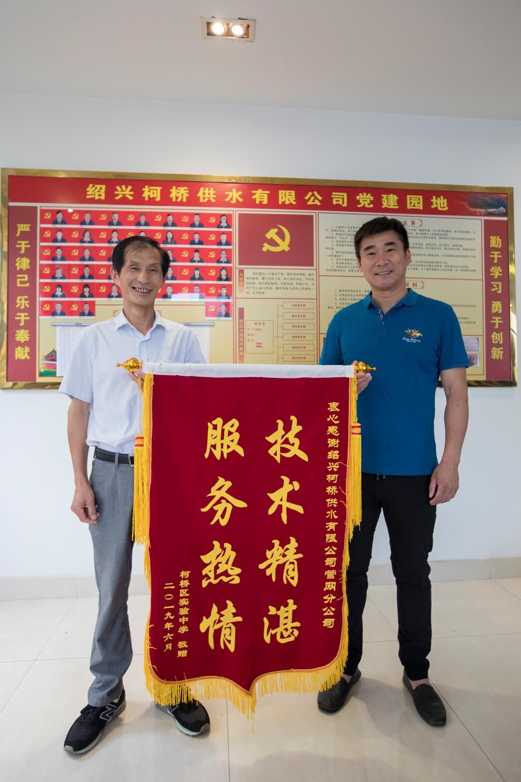 為助力中考,管網(wǎng)分公司立即派出技術(shù)精湛的檢漏班組長上門服務(wù)。經(jīng)過一系列檢查,于當(dāng)晚查出校內(nèi)供水管道漏點3個,切實解決了柯橋?qū)嶒炛袑W(xué)的用水問題。熱情服務(wù)的態(tài)度和精湛的檢漏技術(shù)得到了實驗中學(xué)的肯定和點贊。為此,6月12日,該校總務(wù)科長李強代表柯橋?qū)嶒炛袑W(xué)向管網(wǎng)分公司送上錦旗,以表感謝。